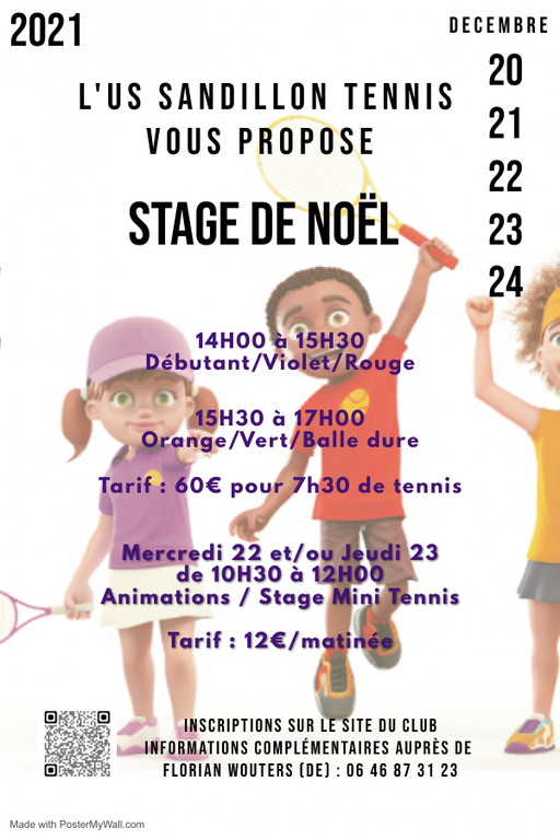 Stage de Noël 2021 Mini Tennis 22 et/ou 23 décembre