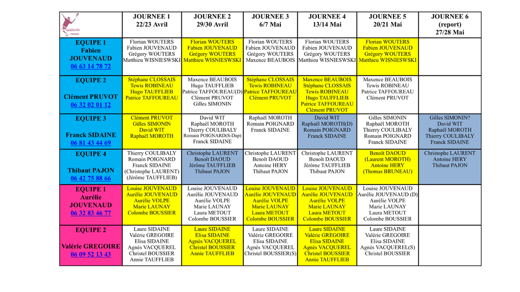 Calendrier championnat