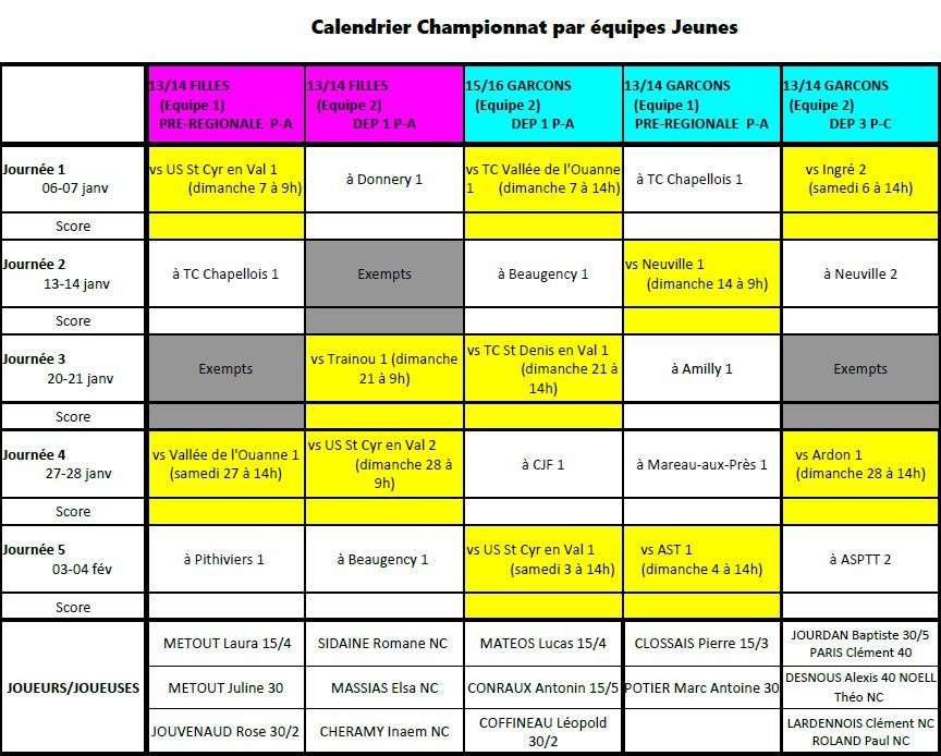 Championnat équipes jeunes 13/14 et 15/16
